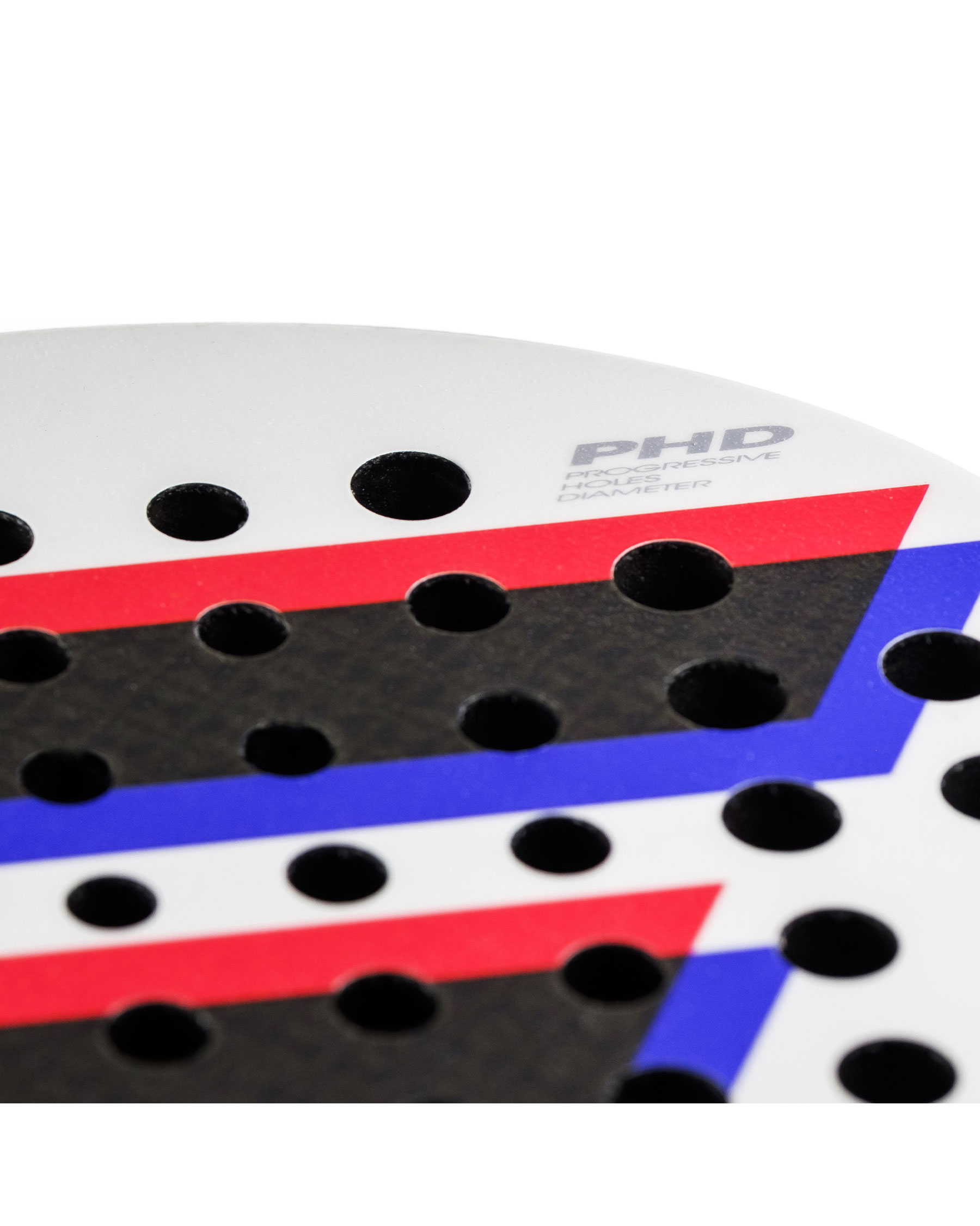 Η ρακέτα WALL MASTER 370, σχεδιασμένη για παίκτες υψηλών επιδόσεων στην κορυφή του παιχνιδιού, έχει σχεδιαστεί σε στρογγυλό σχήμα για μέγιστη ακρίβεια και έλεγχο. Κατασκευασμένο από ειδικές ίνες άνθρακα TEI, μεγιστοποιεί την απορρόφηση κραδασμών κατά την πρόσκρουση για πιο άνετη αίσθηση. Το κεφάλι καλύπτεται με ανάγλυφο «Spin Skin rough» για μέγιστο spin. Μοτίβο διάτρησης PHD με τρύπες 3 διαφορετικών διαμέτρων για μεγιστοποίηση της ακρίβειας στο κέντρο και forgiveness σε χτυπήματα εκτός κέντρου στα άκρα. Μια μοναδική καινοτομία από την Tecnifibre, η κεφαλή ρακέτας είναι σχεδιασμένη με τεχνολογία «X-TOP», ένα μείγμα από τις ισχυρότερες ίνες αραμιδίου που καλύπτονται με επεξεργασία PTFE για μείωση της τριβής.